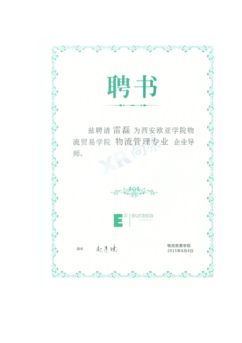 當前位置 > 主頁 > 榮譽資質 > 恭喜西安向榮雷磊先生成為西安歐亞學院物流貿易學院 物流管理專業 企業導師