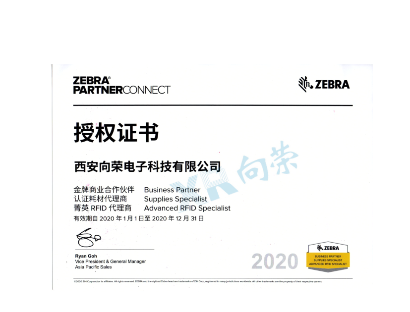 當前位置 > 主頁 > 榮譽資質 > 恭喜西安向榮榮獲斑馬金牌商業合作伙伴授權證書