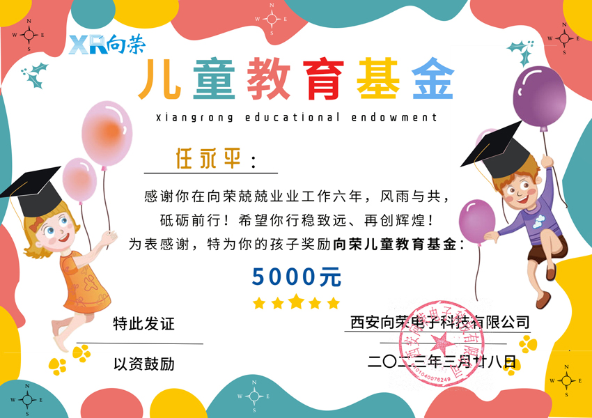 恭喜任永平大朋友獲得向榮兒童教育基金5000元