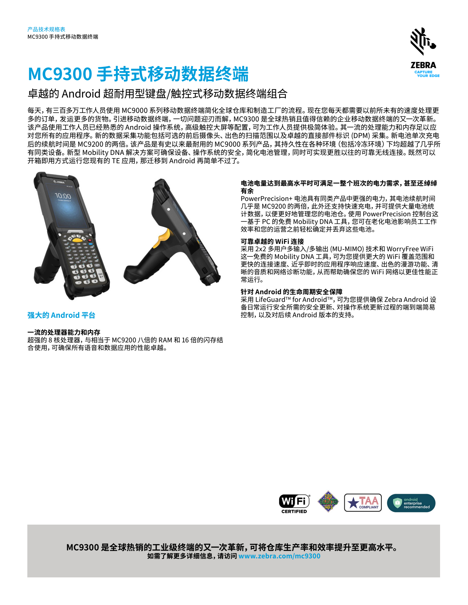 超過三百萬臺 MC9000 系列移動數據終端在簡化全球倉庫和制造工廠的流程中大展身手。但如今高要求的客戶需要您每天以更快的速度處理更多的訂單,發運更多的貨物。引入移動數據終端可以解決這個問題:卓越的超耐用型 MC9300 是新一代全球熱銷且值得信賴的 Android 企業移動數據終端,可提供出色的 Android 業務平臺和應用程序支持。