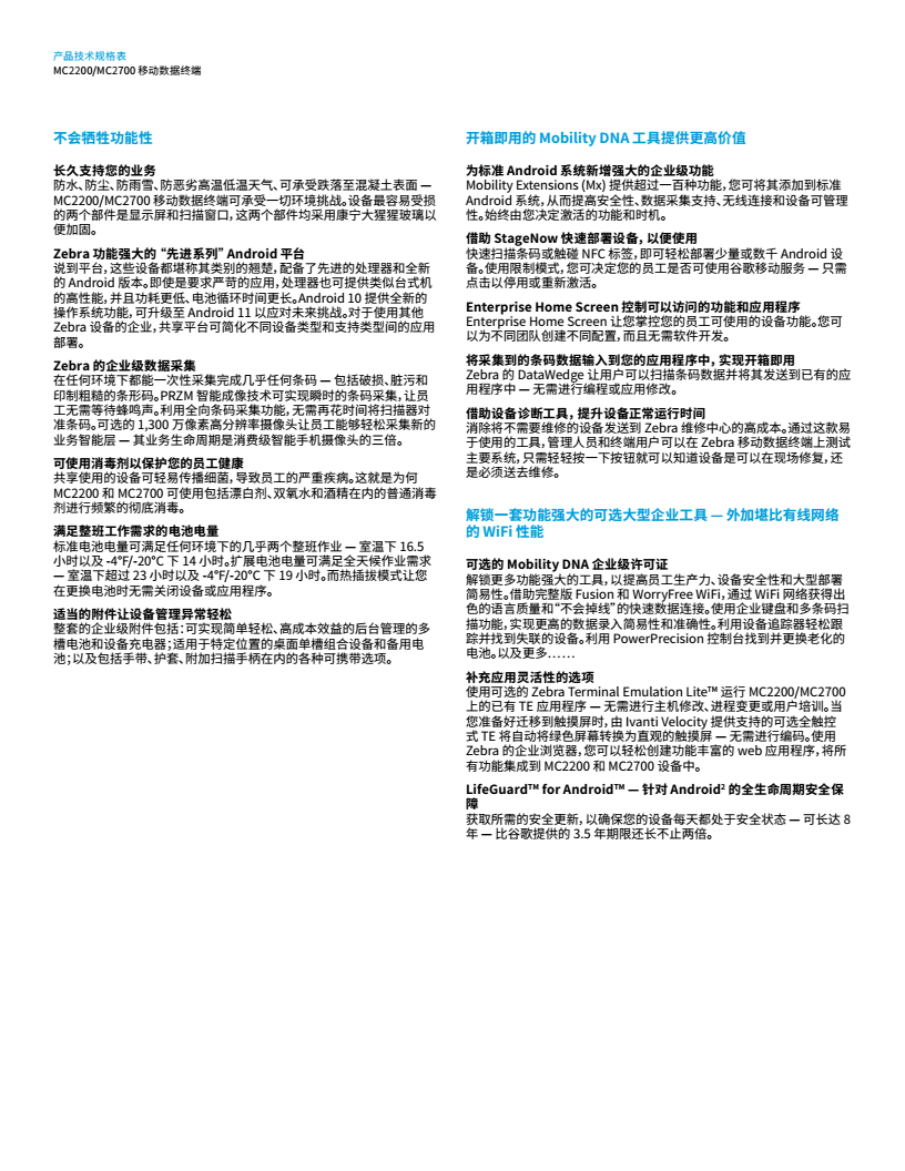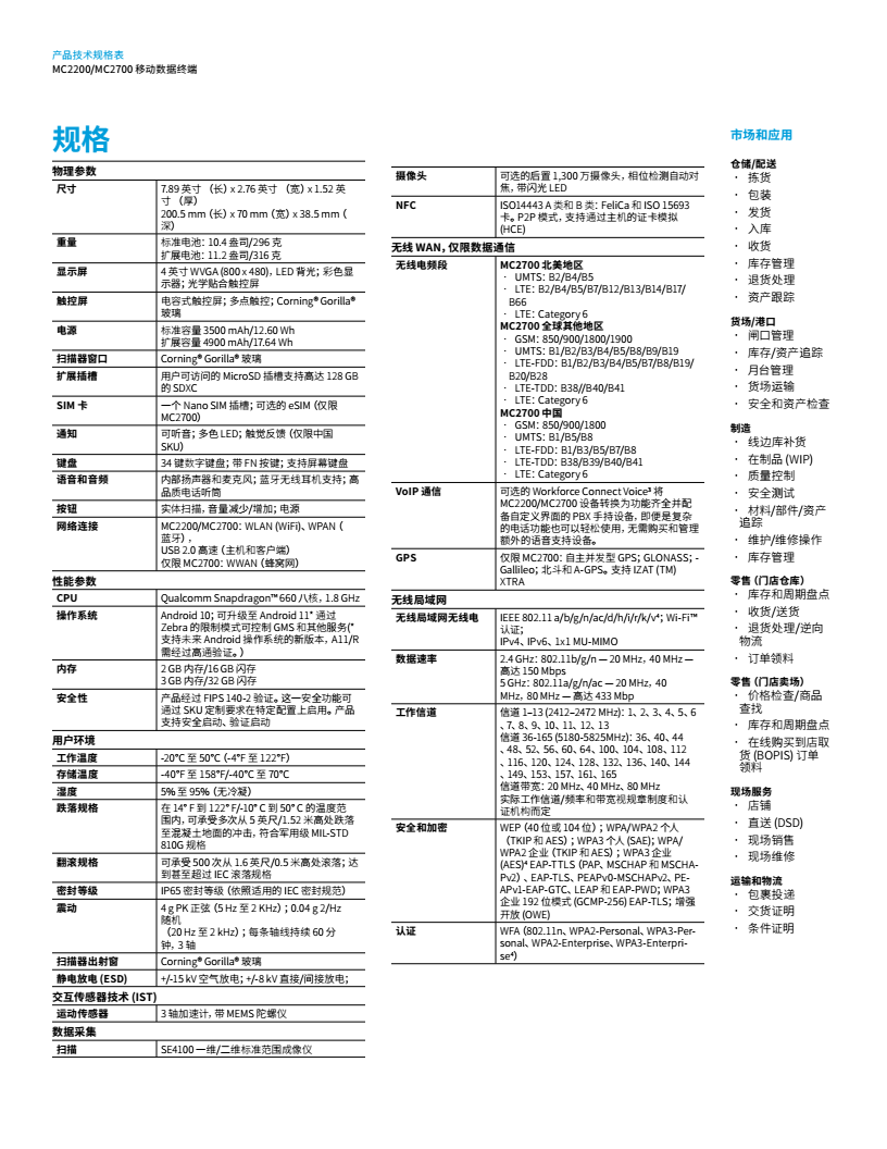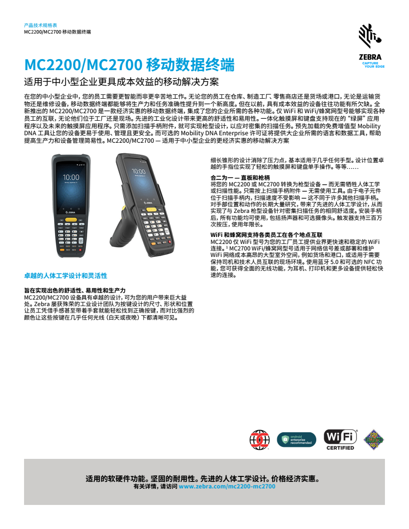 MC2200 和 MC2700 在助力中小型企業員工方面,可提供“不折不扣”經濟實惠的移動解決方案。通過僅支持 WiFi (MC2200) 和支持 WiFi/蜂窩數據 (MC2700) 選項,幾乎可連接任何位置的任何員工。觸控屏和鍵盤可提供相當高的應用程序靈活性。卓越的人體工學設計為舒適度樹立了標桿。合適的堅固級別可提供可靠操作。Mobility DNA 工具讓您的設備更易使用、管理且更安全。