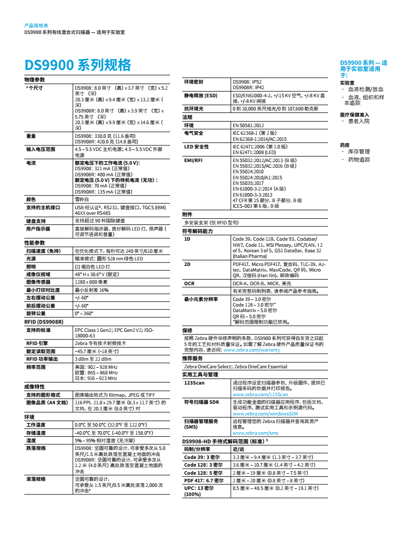 產品簡介: DS9900 系列混合式投影成像儀專為醫學實驗室和藥店設計,有助于提高工作效率和準確性。工作人員每次都能一次性采集實驗室中的多類條碼,包括小的、高密度、曲面和彩色編碼條碼。