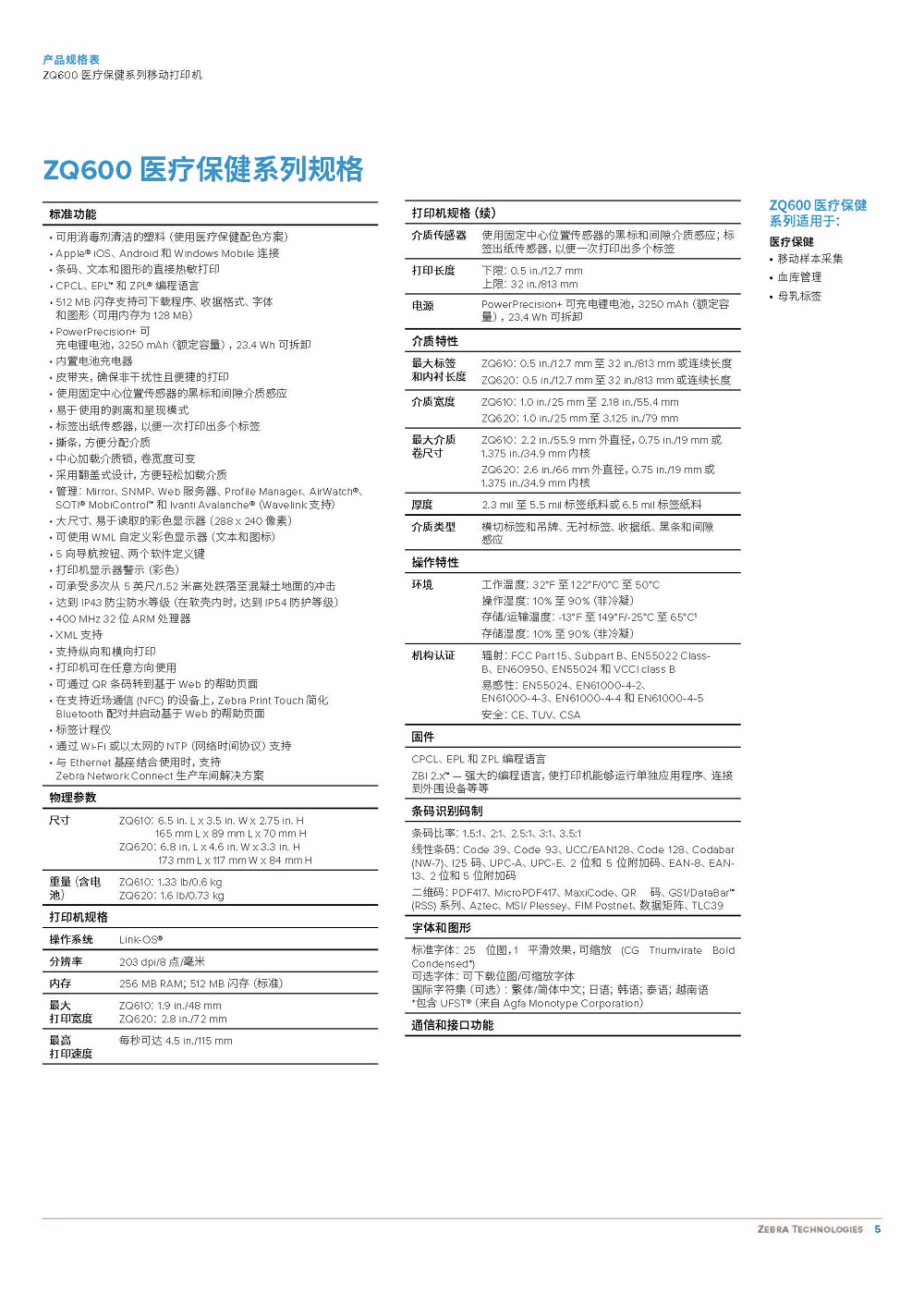移動打印機ZQ600