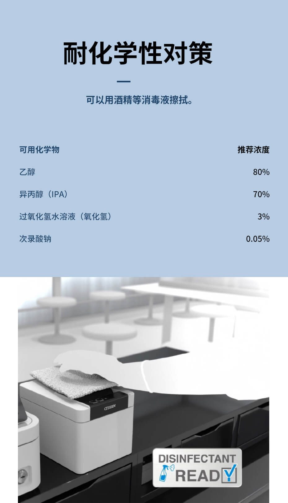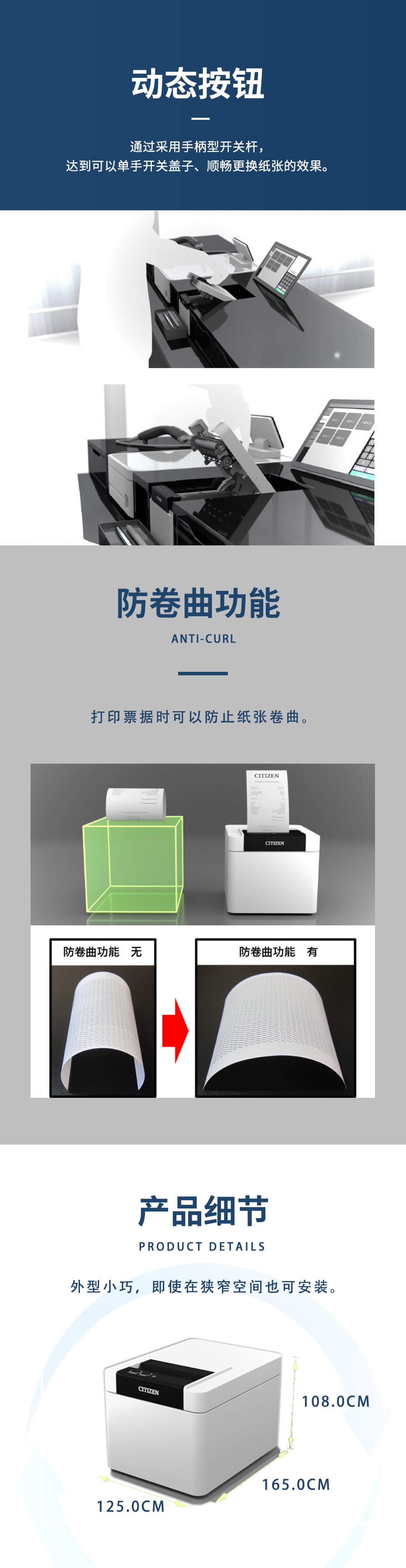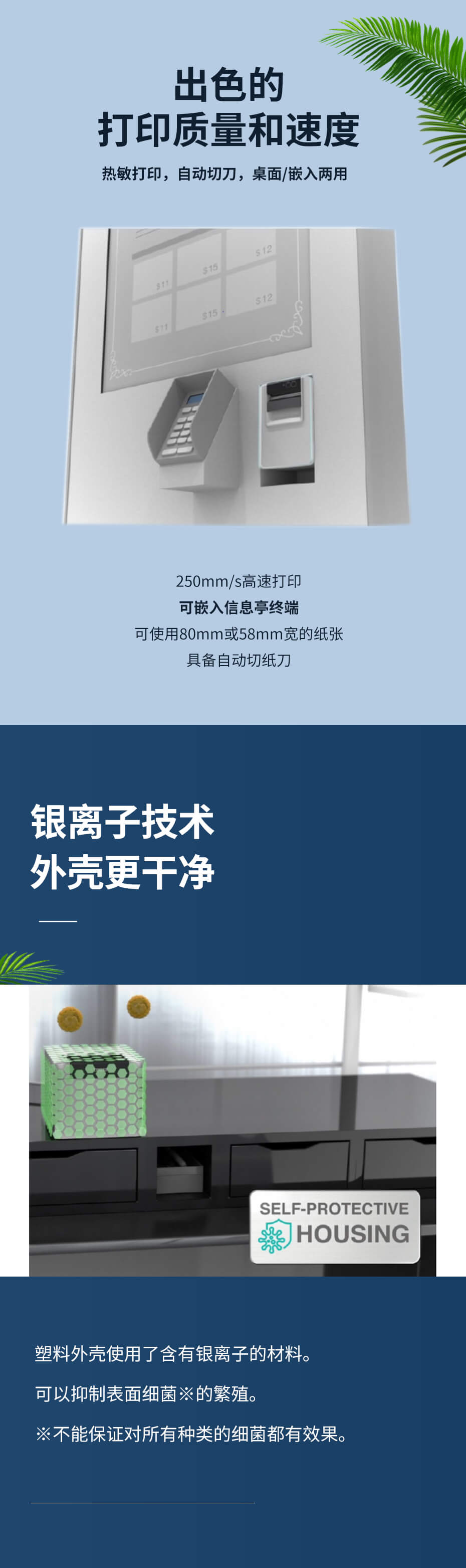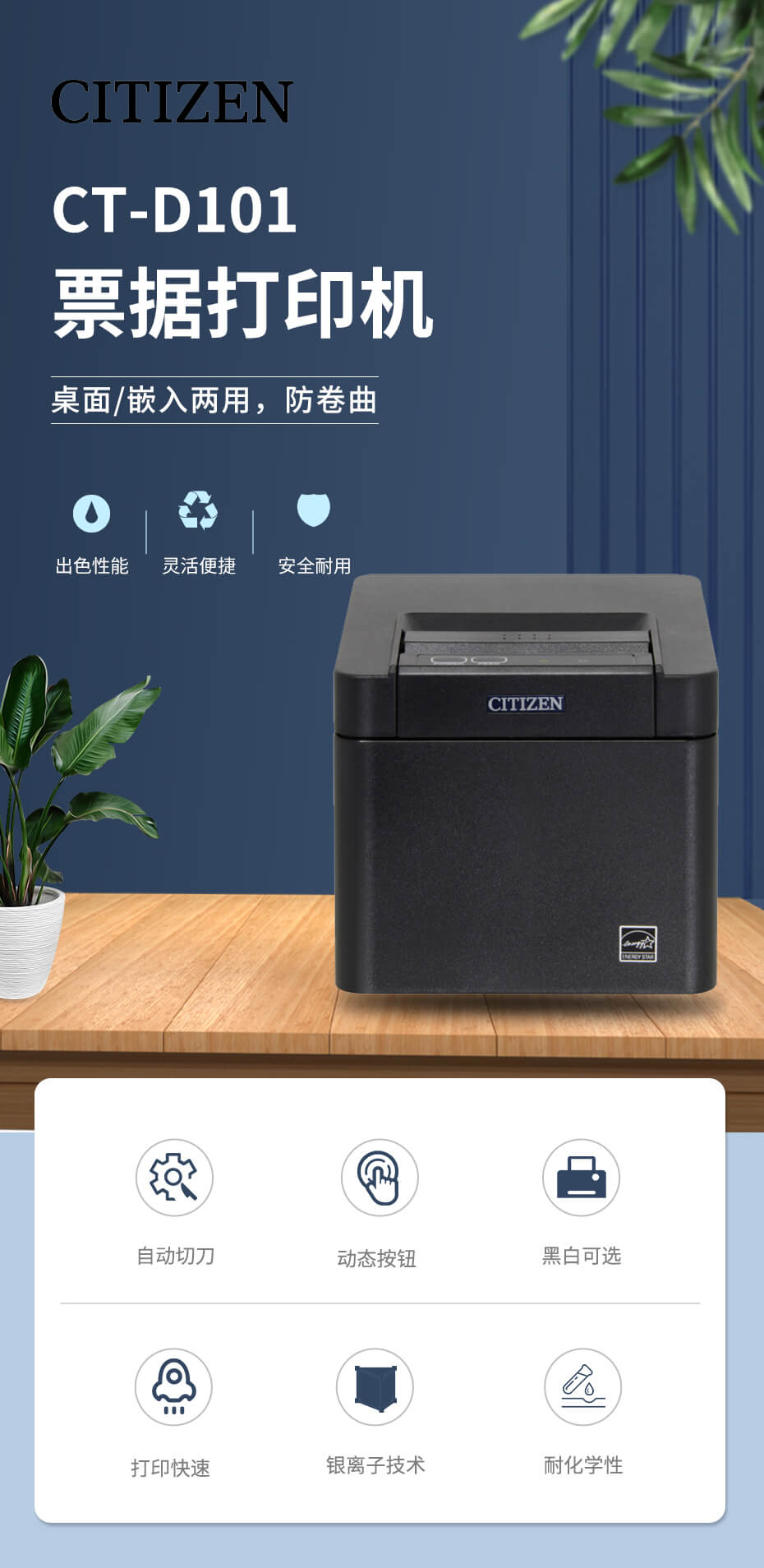西鐵城票據打印機CT-D101使用了含有銀離子的外殼, 可單手操作向上出紙的機型。