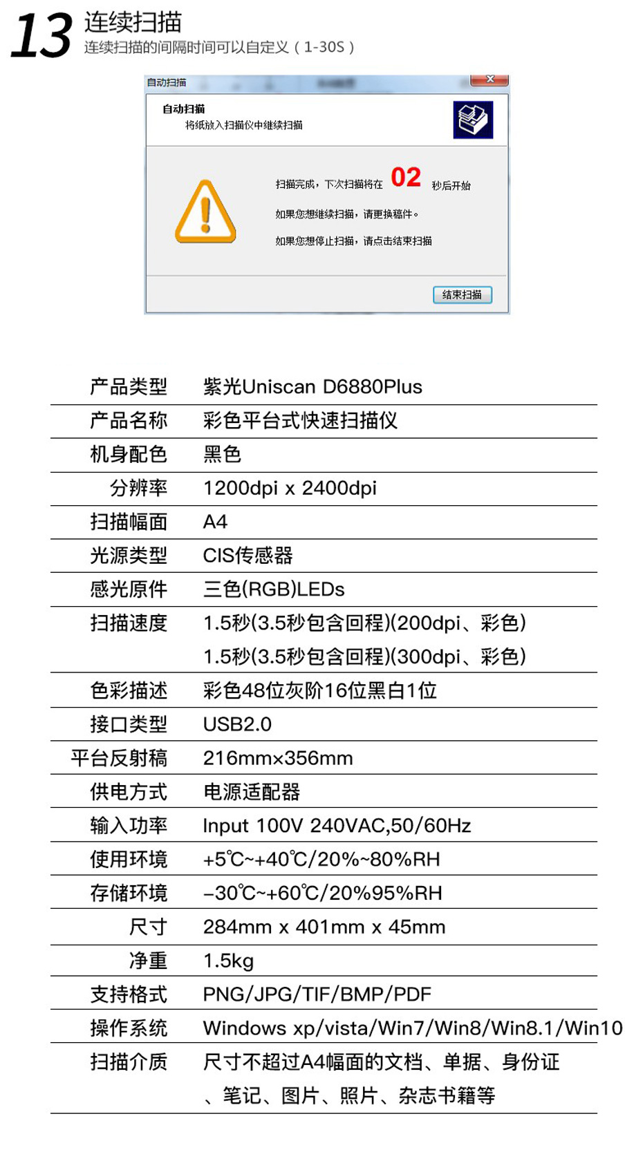 紫光(UNIS)D6880 Plus彩色平臺式快速掃描儀