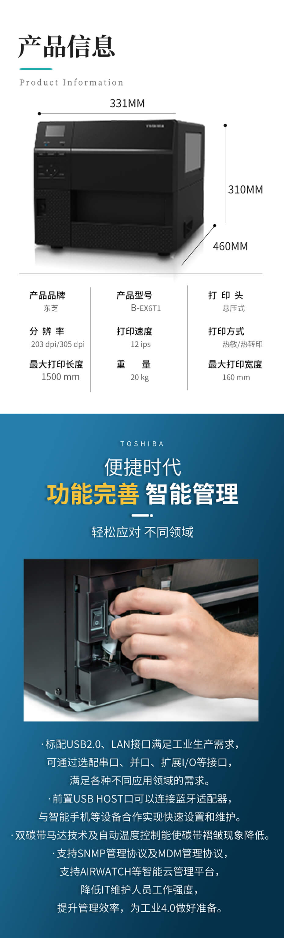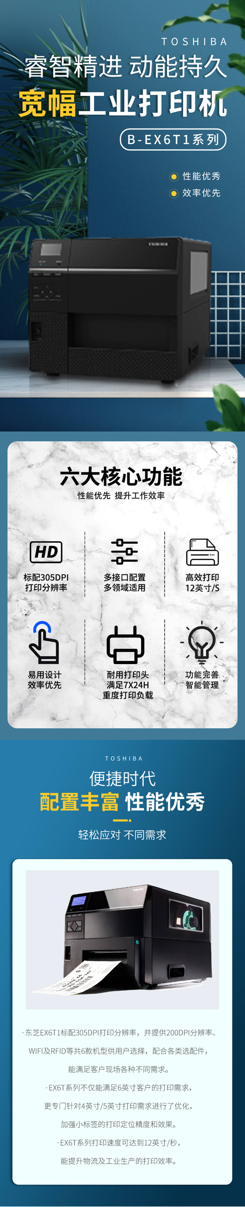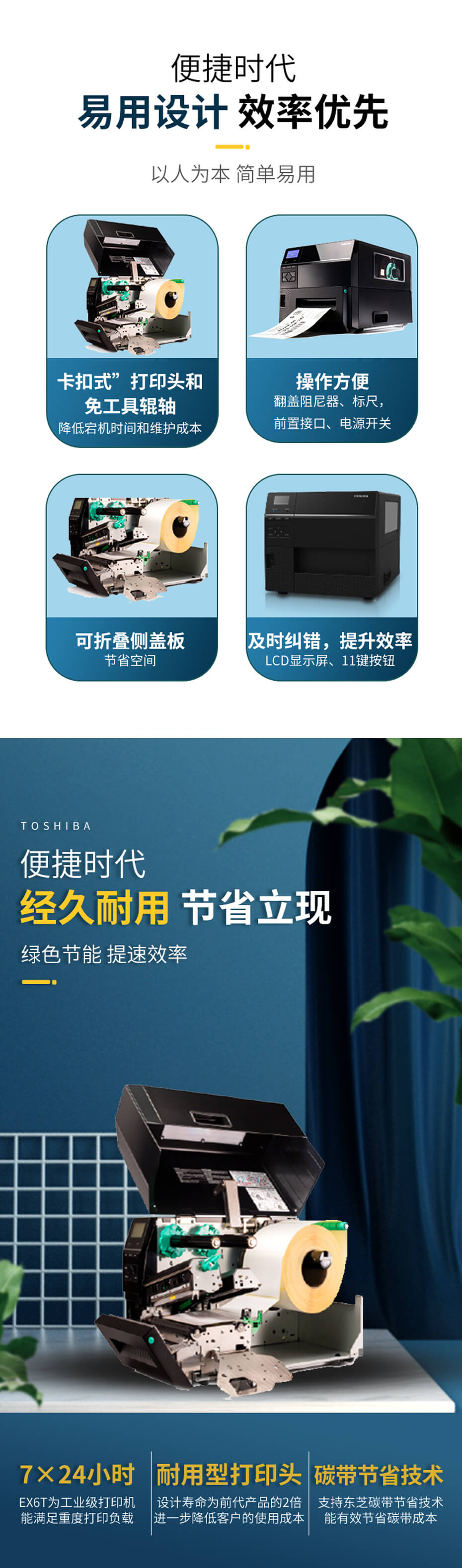 產品簡介: ·EX6T為工業級打印機,能滿足客戶7×24小時重度打印負載。 ·EX6T系列打印機使用了開發的耐用型打印頭,設計壽命為前代產品的2倍,進一步降低客戶的使用成本。 ·EX6T系列標配有GB18030字庫,并支持TTF和OTF全真字體。 ·EX6T1系列支持東芝碳帶節省技術,能有效節省碳帶成本。