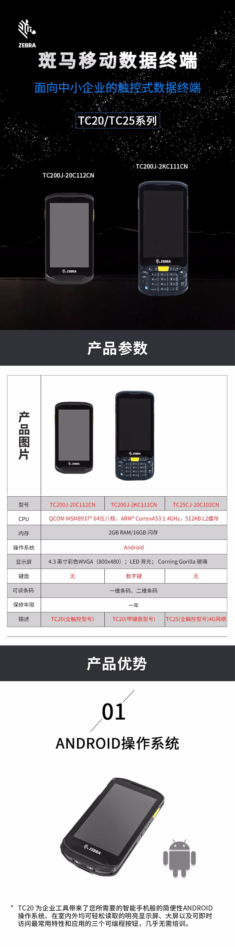 斑馬TC20/TC25系列移動數據終端,面向中小企業的觸控式數據終端,操作簡單便捷,堅固耐用,續航能力強。