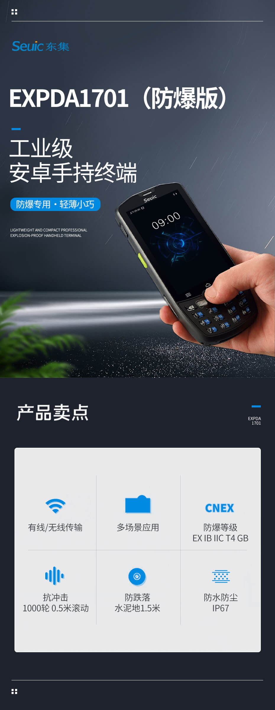 東集Expda1701防爆款通過了30多項可靠性測試,滿足多種苛刻應用環境,機身小巧輕便,功能強勁。