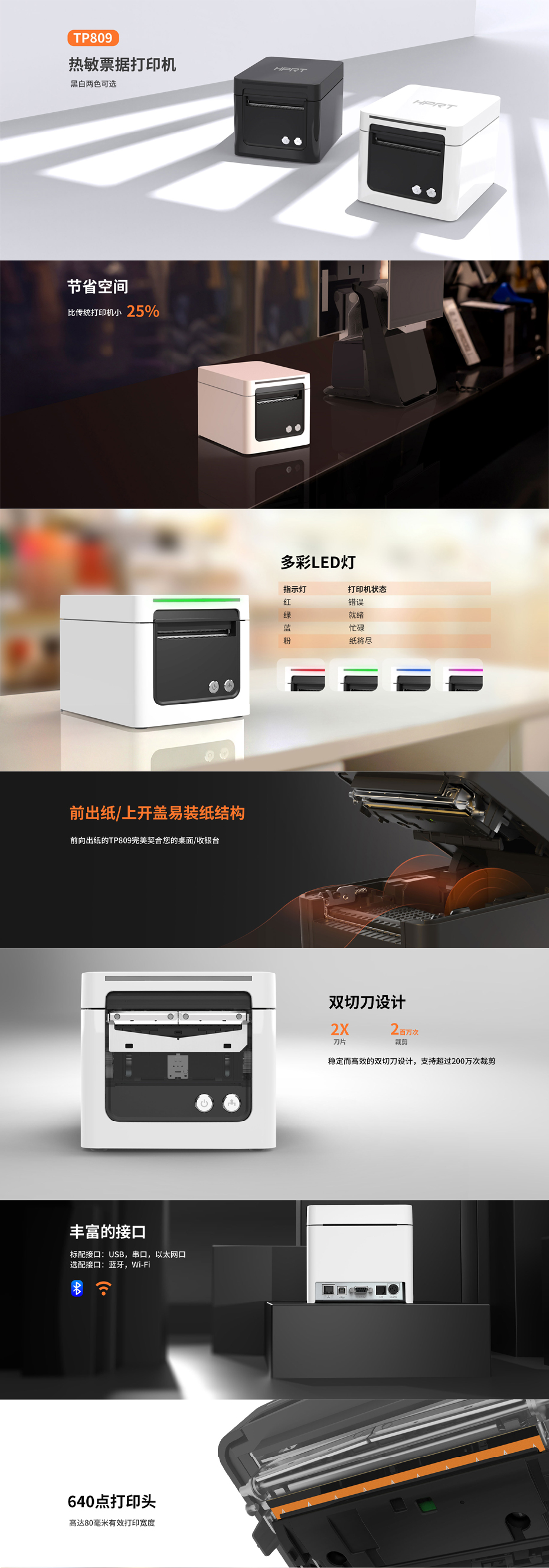 漢印TP809有黑白兩色可選,小巧易收納,雙切刀設(shè)計(jì),豐富接口,打印快速,應(yīng)用廣泛。