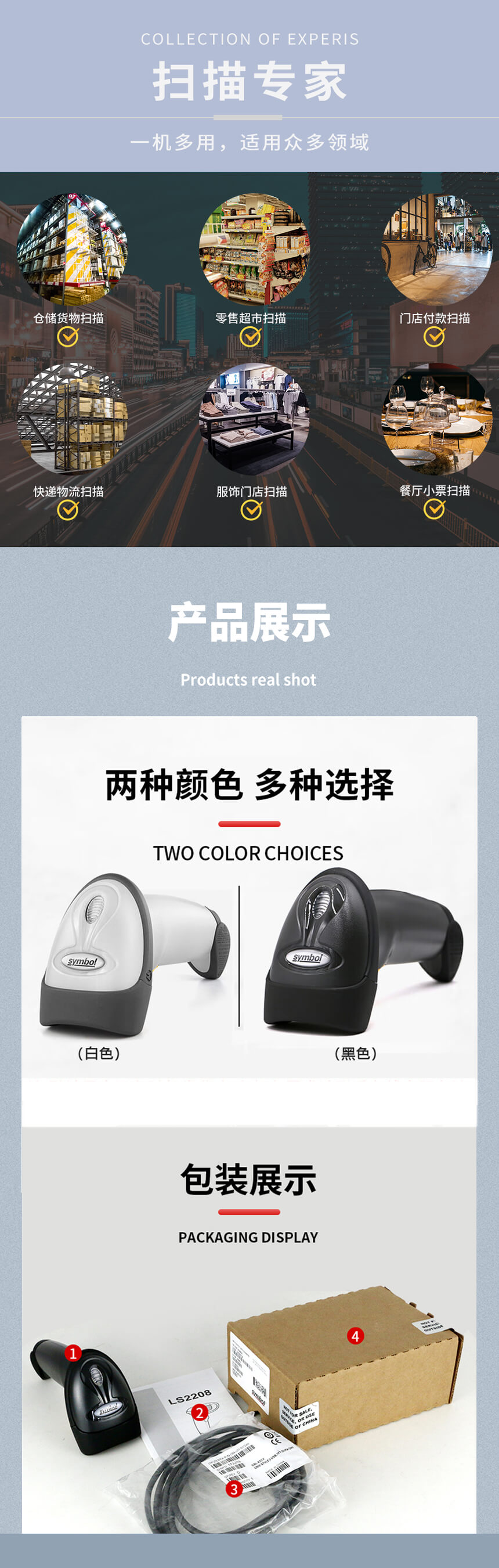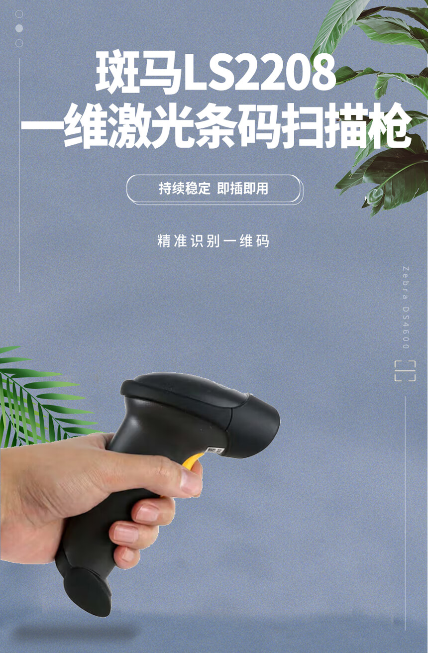 斑馬(ZEBRA)symbol訊寶 LS2208 一維激光條碼掃描槍 掃描器 快遞倉庫盤點(diǎn)條碼槍 LS2208-SR單槍,即插即用,耐用穩(wěn)定,提速工效。