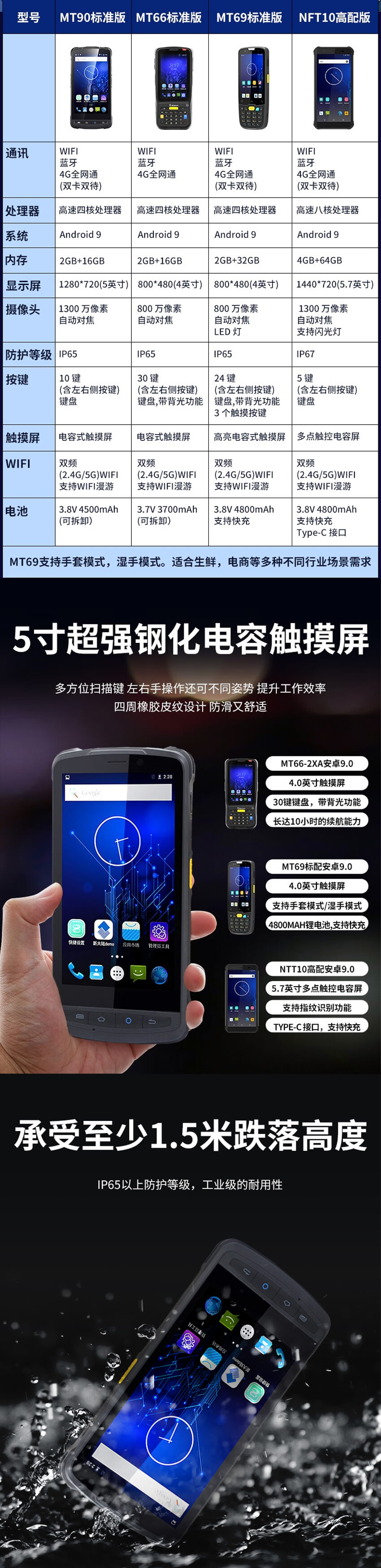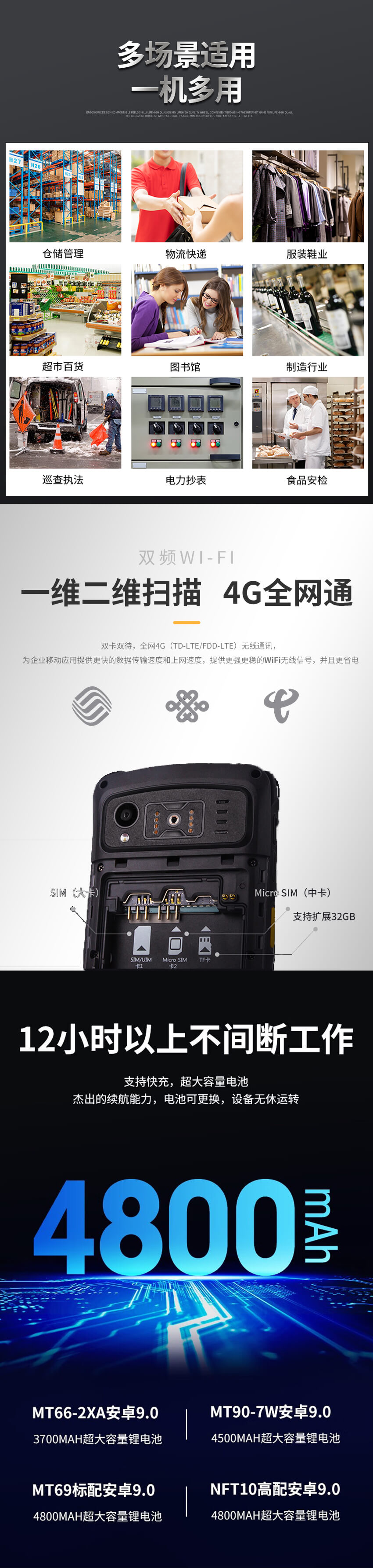支持1D/2D/BT/WiFi /4G全網通/3G全網通/GPS/ Camera/NFC,滿足多樣應用需求。